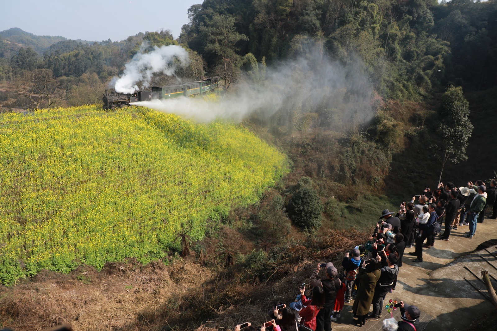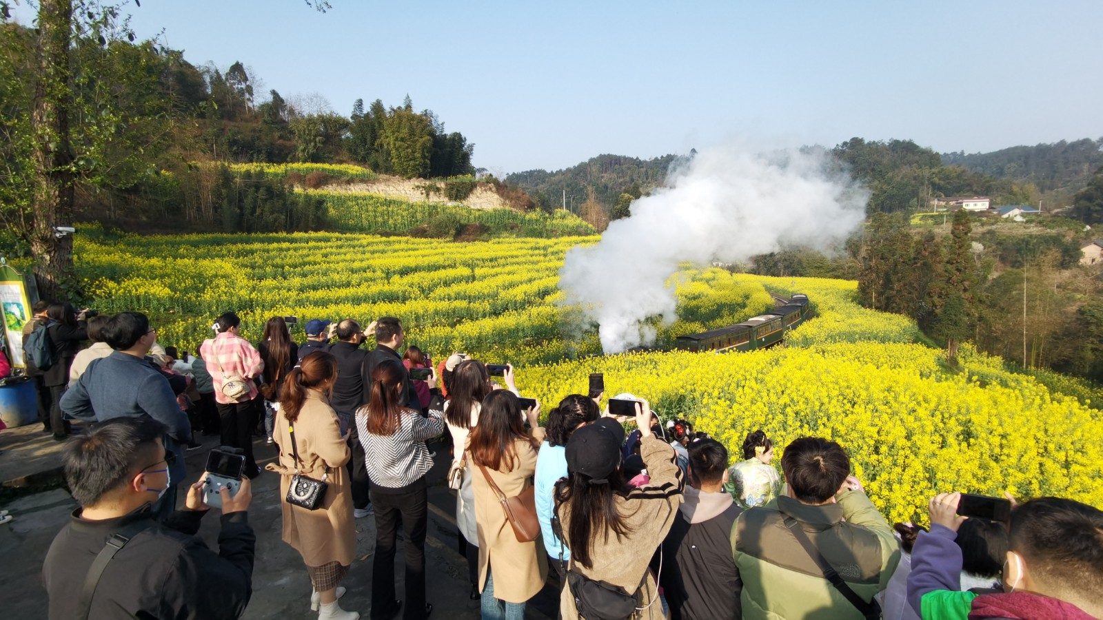 油菜花开,美丽如画,开往春天的小火车正在画卷中穿行,铁路旁、山头上游人们徜徉在春天里。MK SPORTS川投峨旅公司2023年“花季之旅”开启以来,逐步进入高潮,游客数量持续增加,周末更是一票难求,近万人的游客一扫疫情以来的阴霾,迎来旅游业复苏的春天。