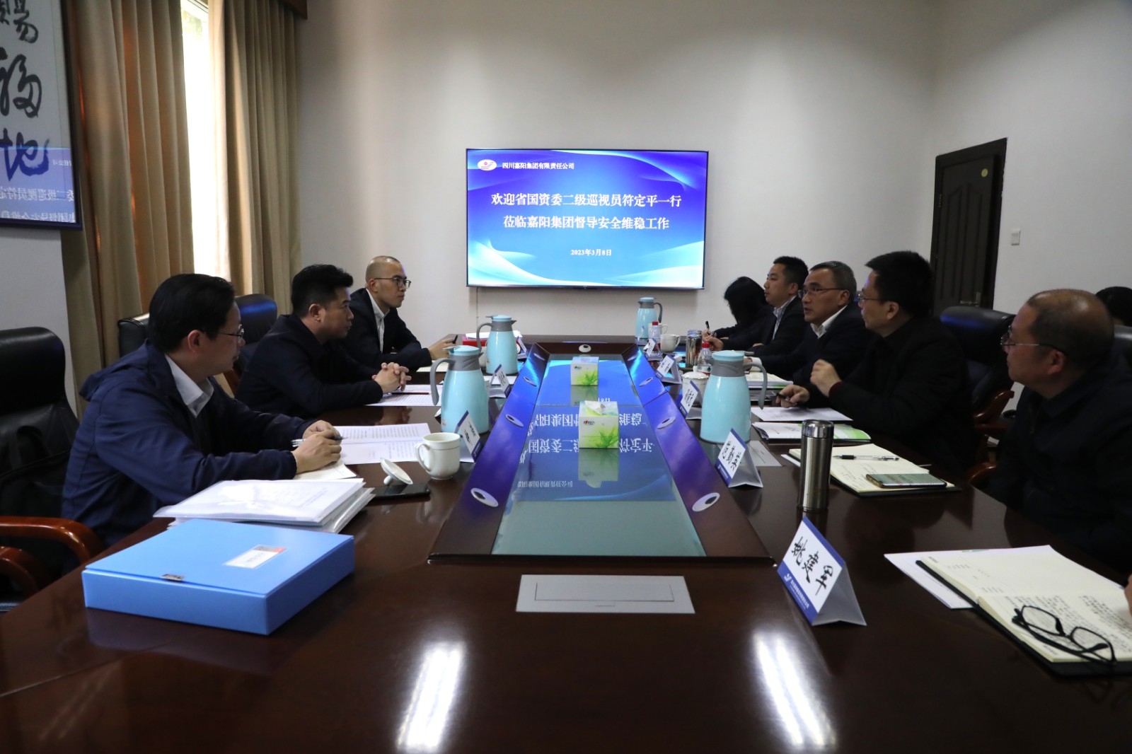 3月8日,省国资委二级巡视员符定平带队到MK SPORTS开展督导调研,全面了解“两会”期间安全生产、信访稳定等工作,川投集团副总经理孙前元等陪同调研。