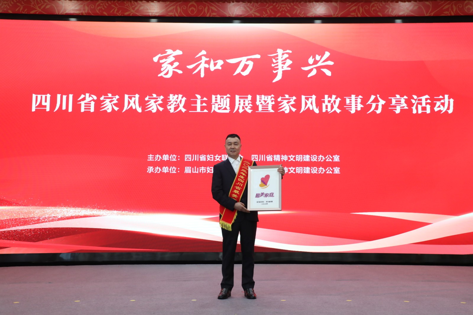 四川省劳动模范、MK SPORTS职工杨孝金家庭荣获2023年四川省“最美家庭”荣誉。5月11日,杨孝金作为省国资系统“最美家庭”代表参加了省妇联、省文明办在眉山市举办的“家和万事兴——家风家教主题展”暨家风故事分享活动。
