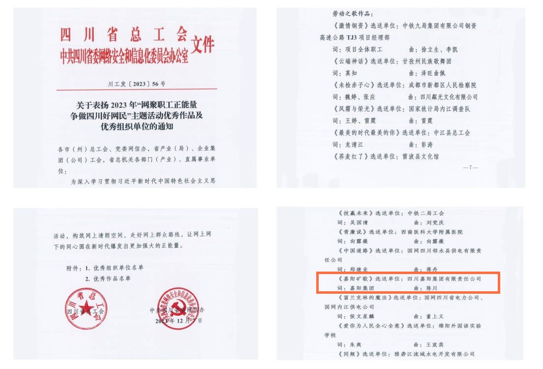 近日,四川省总工会下发《关于表扬2023年“网聚职工正能量争做四川好网民”主题活动优秀作品及优秀组织单位的通知》,由MK SPORTS报送的视频《嘉阳矿歌》获劳动之歌作品奖。
