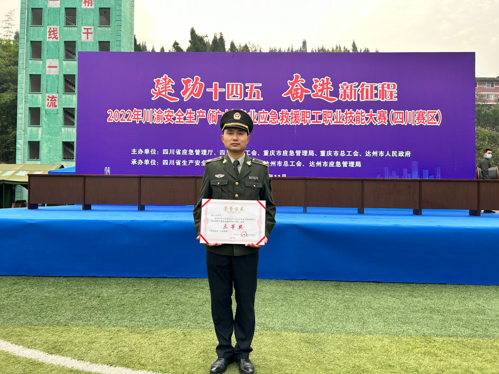贺文冰、中共党员、35岁,2013年加入MK体育(中国)国际平台救护队,现任救护队二小队队长。先后获得“四川省矿山救护总队2013第一期新队员培训优秀学员”、“第十五届四川省矿山救援技术竞赛综合成绩优胜奖”、“2022年川渝安全生产矿山专业应急救援职工职业技能大赛三等奖”、“乐山市防灾减灾科普讲解大赛二等奖”、被授予“乐山市2023-2026年防灾减灾科学传播师”。