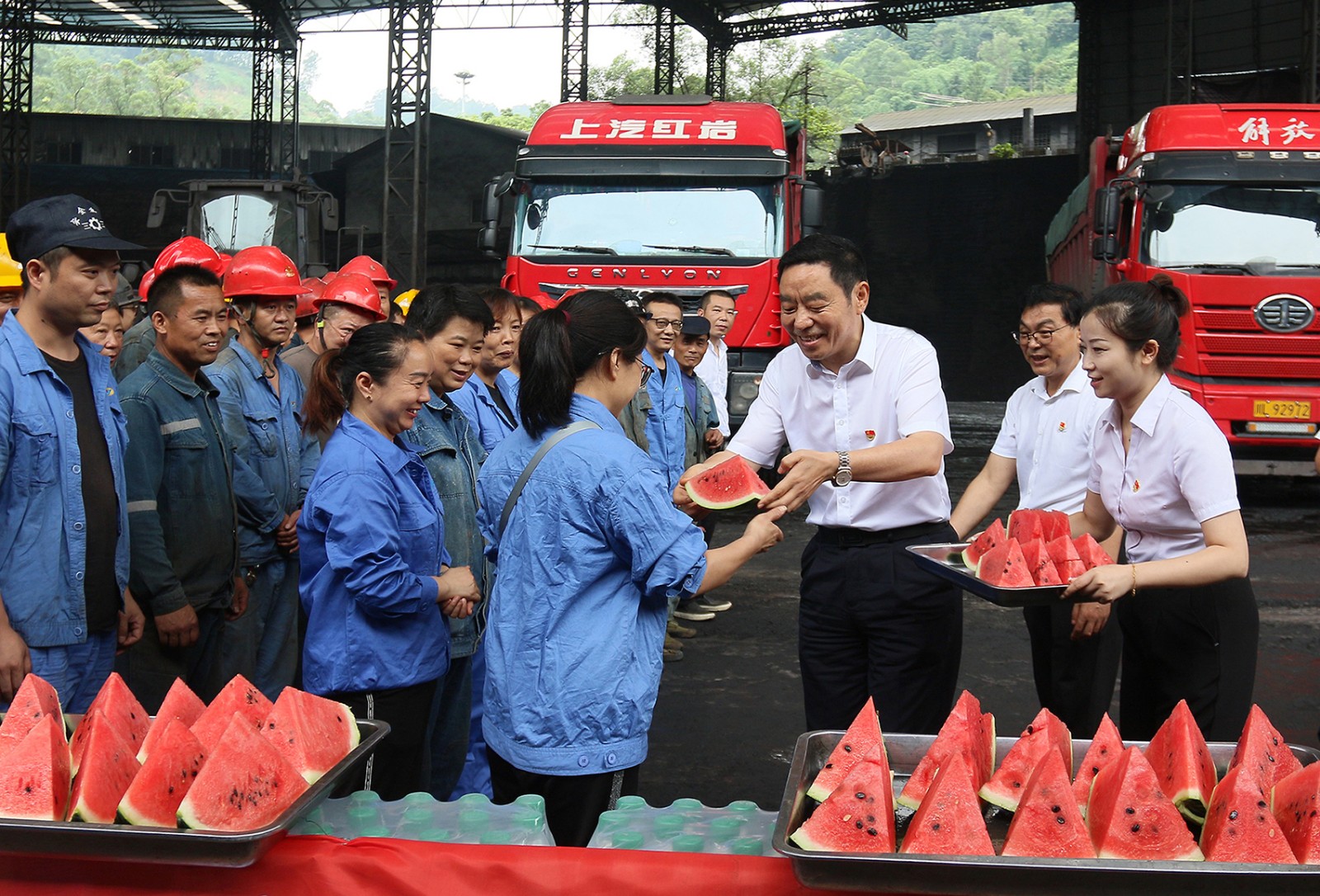 6月27日,川投集团党委副书记、董事邓凯带队到嘉阳煤矿开展“关爱职工,清凉一夏”慰问活动,为高温岗位上的职工送去清凉和关爱,就切实做好防暑降温和煤矿雨季“三防”安全工作提出希望和要求。