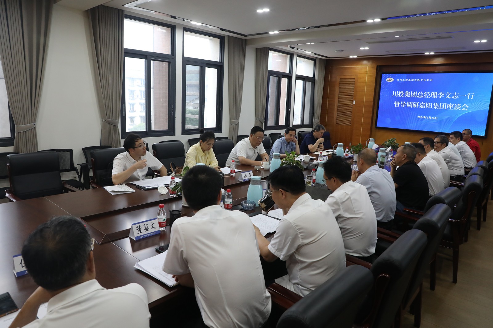6月26日,川投集团党委副书记、副董事长、总经理李文志一行到公司调研生产经营工作。党委书记、董事长杜勤,党委副书记、总经理范勤英等领导班子成员与相关工作人员陪同调研。