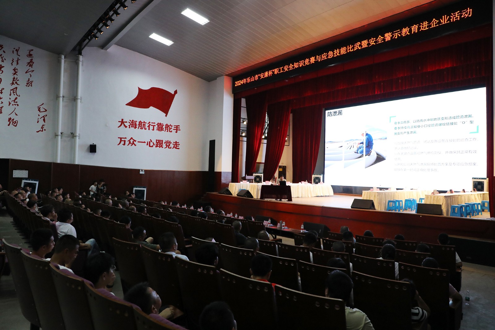 安全警示教育进企业活动,邀请成都大学应急管理学院副院长、教授武玉梁,讲授了安全生产法律法规、工伤预防、自救互救、煤矿基层班组安全管理与矿山安全文化建设等知识,进一步提升了广大职工安全意识、防范意识、健康意识。乐山市总工会党组书记、常务副主席郑强对活动进行了总结,参与活动的领导为获奖单位进行了现场颁奖。