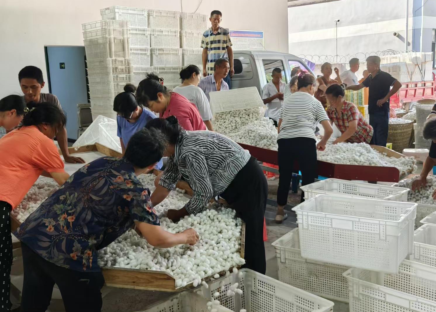 该项目2024年扩展至覆盖15个村及55个个体养殖户,并与布碧丝公司探索出“公司直营+集体经济+私营业主”合作模式,集中力量共建蚕桑基地,充分利用撂荒地、坡地、台地等边缘地块,推行“粮经融合”战略,已开发蚕桑种植面积达3000亩,激活土地潜能,推动有机蚕桑特色产业蓬勃发展,增强产业竞争力和带动效应。