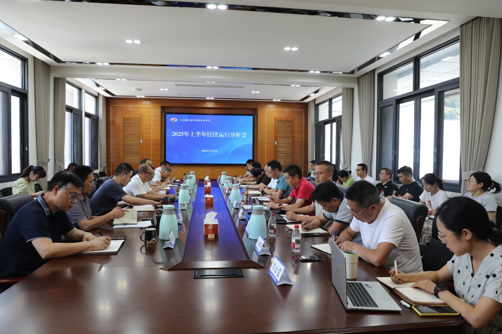 7月31日下午,集团公司召开上半年经济运行分析会,总结公司上半年主要生产经营指标完成情况,剖析经营工作存在的困难,安排部署下半年生产经营工作。公司领导班子成员、机关各部门负责人、各单位负责人及财务负责人参加会议。