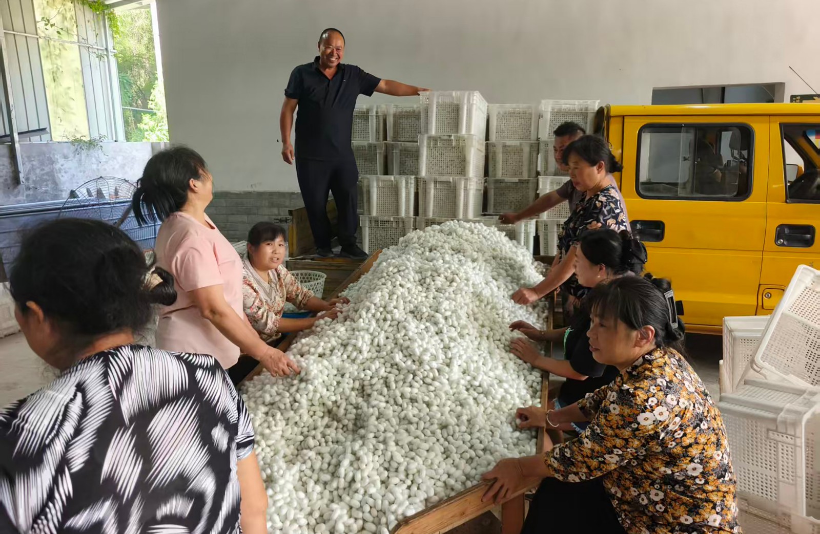 据统计,2025年大寅镇15个村(社区)积极投身养蚕产业,已完成5季养蚕,共饲养小蚕479.5张,收获蚕茧22672.7公斤,实现销售收入119.16万元,利润达37.41万元,村平均利润率高达31.4%。其中,高山村全面丰产,年销售收入接近22万元,有效带动了农户增收和村集体经济发展,蚕宝宝吐出的“金丝银线”编织出了更加美好的乡村新篇章。