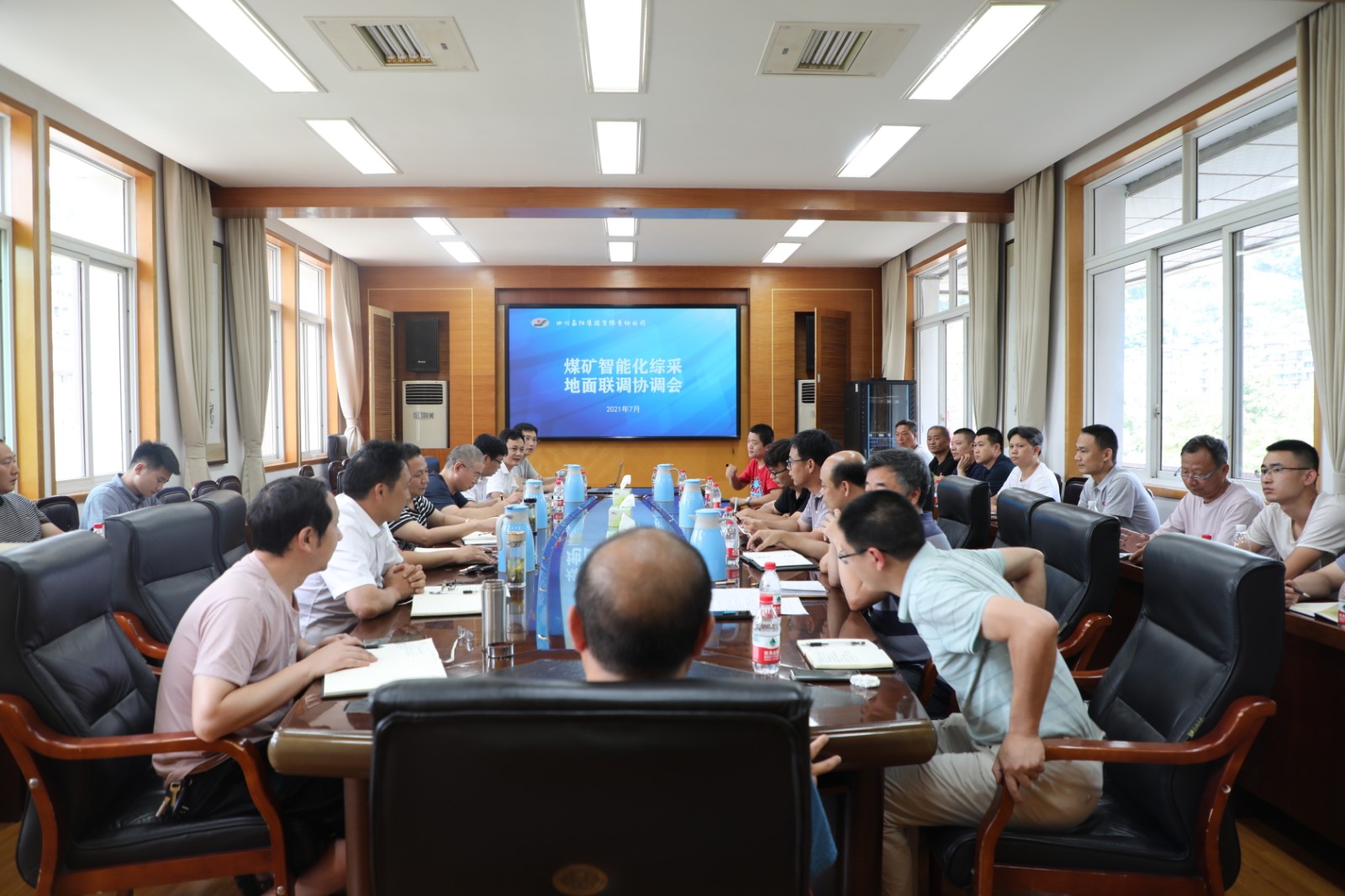 7月27日,MK SPORTS召开智能化综采地面联调协调会,总经理、智能化综采项目领导小组组长范勤英,副总经理、副组长王维洪、詹本远,总经理助理丰雄龙,嘉阳煤矿矿长陈文兵,公司机电主任工程师、智能办主任刘爱明等出席协调会,智能化综采安装工作相关责任人、厂家技术人员、物供司相关人员以及公司智能化综采项目技术服务团队相关人员参加会议。