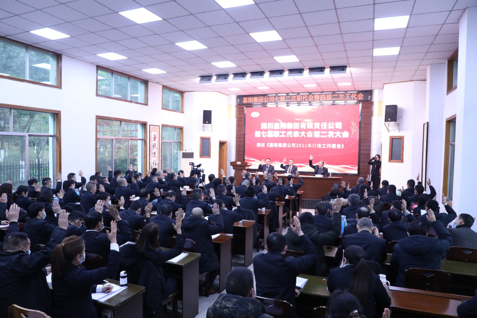 20日上午8点30分,在激情澎湃的国歌声中,MK SPORTS七届二次职代会暨四届二次工代会拉开帷幕。大会听取了总经理范勤英所作题为《以科技破困局 靠技术谋出路 开创企业发展新局面》的行政工作报告。报告全面回顾了公司2021年的目标完成情况及主要工作:在川投集团和公司党委的坚强领导下,经营班子带领全体职工踔厉奋发,笃行不怠,抢抓市场机遇,深化内部改革,践行社会责任,克服了诸多困难和挑战,矿井智能化建设取得了突破性进展,安全生产平稳运行,经营效果良好,生产煤炭115万吨,完成掘进进尺8436米,营业收入首次突破5亿元达5.3亿元,全面完成川投集团下达的各项目标任务。报告明确了2022年的目标任务和工作思路。报告强调要坚守安全底线,做好环保工作,抓好疫情防控;要坚持科技进步,树立产业标杆;要保持战略定力,巩固主业优势,培育发展动能;要持续深化改革,确保国企改革三年行动圆满收官;要为职工进一步提供发展空间,健全选人用人机制;着力“我为群众办实事”,与职工共享发展成果。