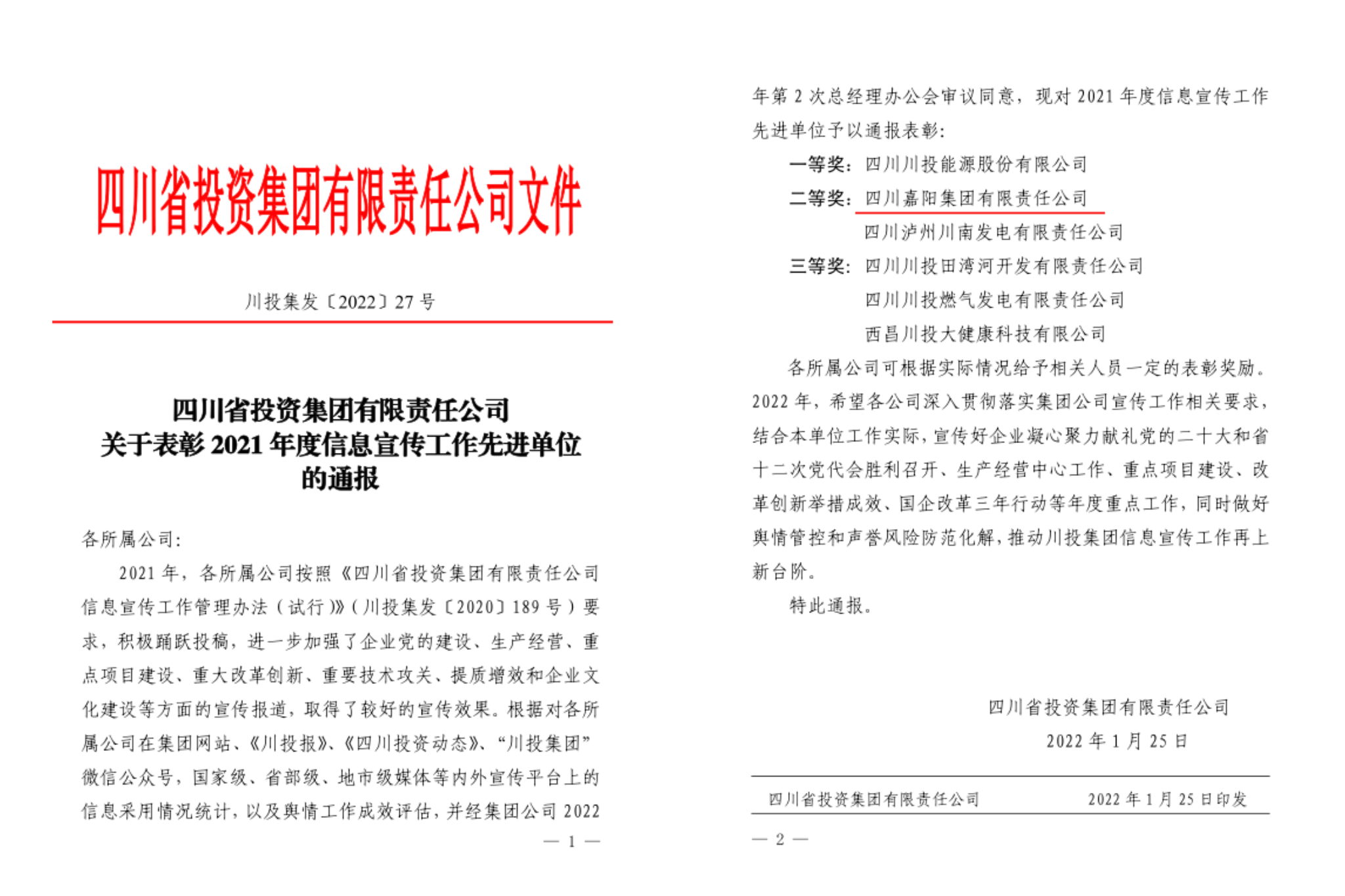 硕果累累,喜讯连连。1月25日,川投集团召开2022年度工作会,会议表彰了2021年度经营业绩突出贡献单位和信息宣传工作先进单位,MK SPORTS公司喜获两项荣誉。