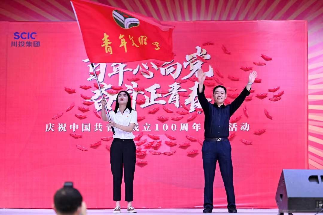 “我们身在百米井巷,我们心中充满阳光,在抗战烽火中诞生,在共和国旗帜下成长,明亮的矿灯指引方向,笑迎煤海滚滚浪……”庆祝共青团成立100周年主题晚会在《嘉阳矿歌》的歌声中拉开帷幕,川投集团党委副书记邓凯致辞并勉励青年职工们牢记共青团使命,发扬优良作风,传承嘉阳“燃烧精神”,贡献青春力量。邓凯书记分别授予嘉阳煤矿团总支和川投峨旅旅游讲解团队“青年突击队”和“青年文明号”的荣誉旗帜。晚会现场红歌联唱《我和我的祖国》《年轻的朋友来相会》《龙的传人》《五星红旗》、朗诵《青春》、大合唱《少年》,一个个节目精彩纷呈,为大家呈现了一场精彩绝伦的视听盛宴。
