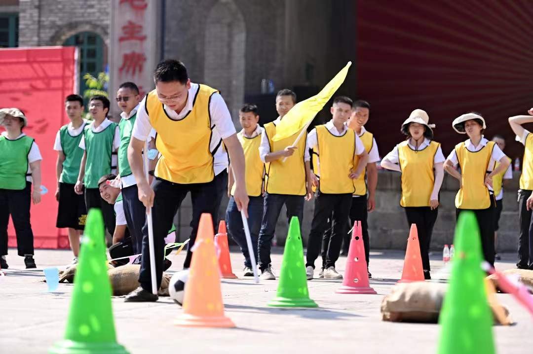 在嘉阳党性教育基地的东方红广场,青年职工代表们在共青团的旗帜下,齐唱团歌,重温入团誓词。开展红色主题运动会,现场将青年分为5支队伍,通过“朱德的扁担”“排除地雷”“支援前线”等系列运动,让全体青年更加深层次地了解共产党、共青团的光辉历程。活动中,青年们充分展现了青春洋溢的活力,蓬勃向上的朝气,大家纷纷表示要在未来的岁月里将“五四精神”和嘉阳“燃烧精神”薪火相传,作为助推企业高质量发展的强大精神动力。