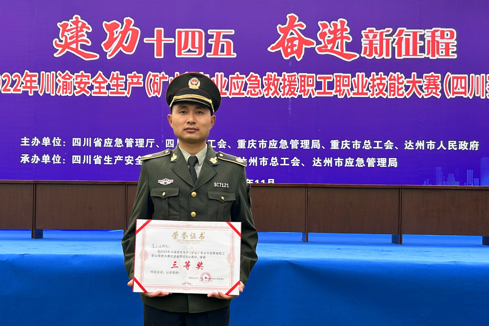 11月23日至24日,川渝安全生产(矿山)专业应急救援职工职业技能大赛在四川省达州市举行,MK SPORTS矿山救护队参赛队员贺文冰荣获武装越野项目三等奖。
