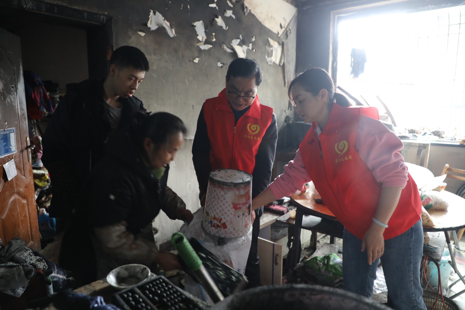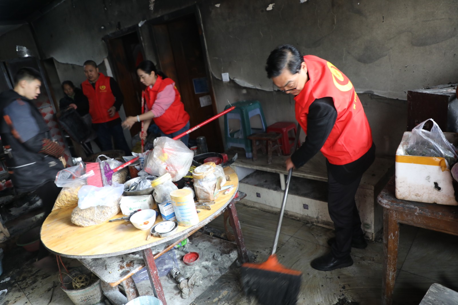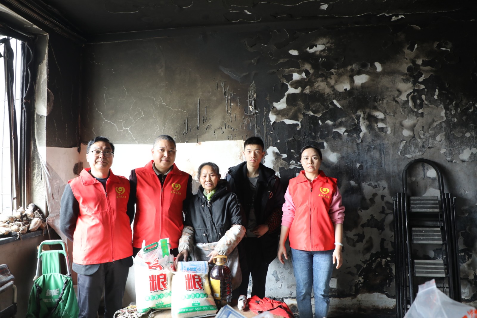 宋国新是智障人员,他的母亲是智力2级残,父亲在一次意外事故中死亡,目前跟随爷爷奶奶生活,住在矿区西区。他的爷爷奶奶也已经80多岁了,早已失去劳动能力。机关第一党支部在乡村振兴中与他结对以来,多次到他家中看望他们,帮助他们解决生活中的实际困难。3月3日,由于电线线路失火,宋国新家中财物毁于一旦。机关第一党支部得知情况后,第一时间组织党员到宋国新家中看望他们,向他们送去米、面、油等生活用品,为他们打扫火灾现场,帮助他们灾后重建。经过近1个小时的清扫,完成了火灾现场的清理工作。