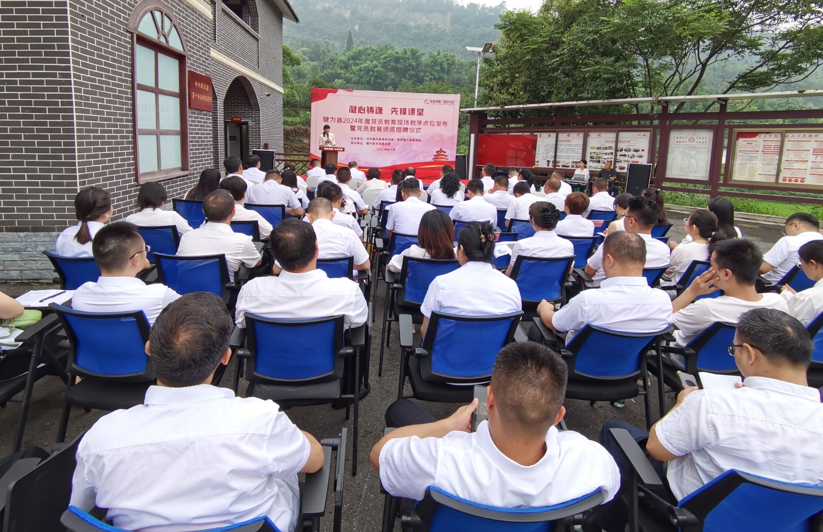 6月25日上午,犍为县党员教育现场教学点位发布暨党员教育师资授聘仪式在小市村“中共犍为县第一个支部陈列室”举行,嘉阳煤矿等13个单位获犍为县首批党员教育现场教学点授牌,沈忱等57人被纳入犍为县党员教育师资库。