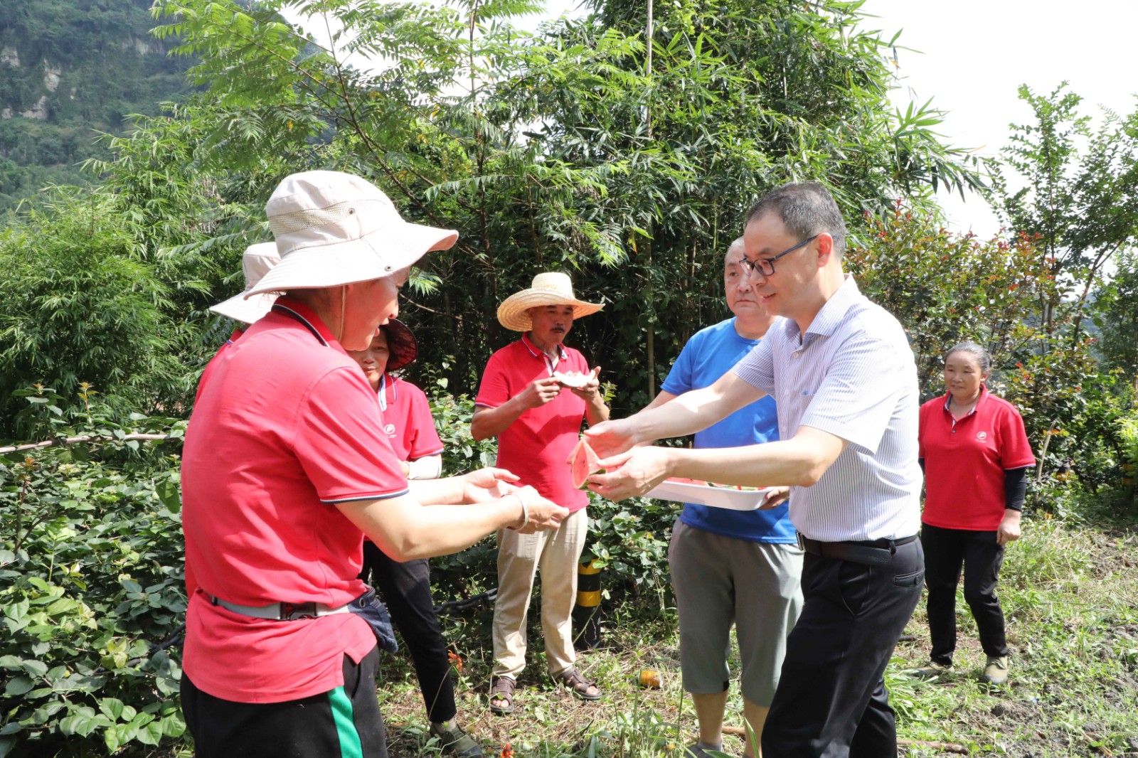 “把手里的活放一放,吃口西瓜解解暑,喝口水凉快凉快”,吕明强一边招呼着职工们,一边将切好的西瓜送到职工手中,机关第一党支部支委成员也将一瓶瓶矿泉水递到职工手上。职工们吃着清甜可口的西瓜,喝着解暑的矿泉水,纷纷表示,一定不辜负组织的关心,将坚守岗位,恪尽职守,积极工作。